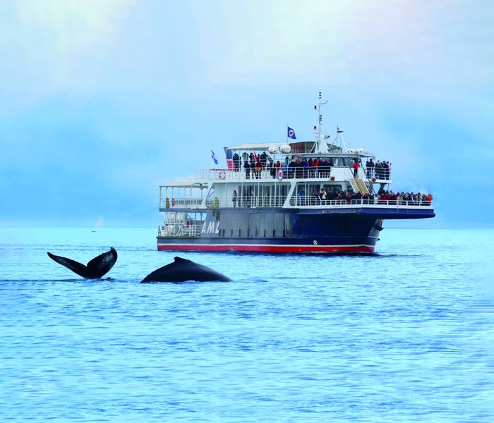 - Une croisière aux baleines en bateau animée par un guide-naturaliste bilingue et certifié